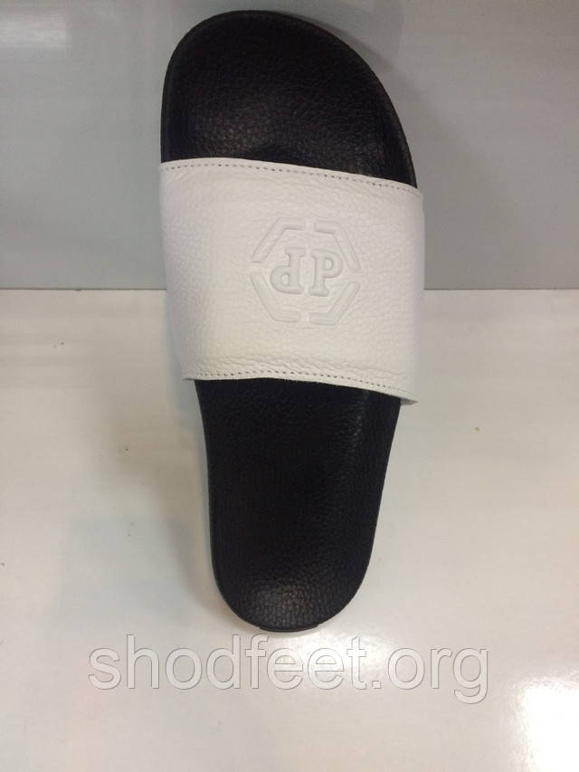 Чоловічі капці Philipp Plein для повсякденного носіння. Шльопанці дуже м'які і зручні, шорстка устілка не дозволяє ковзати нозі при підвищеній вологості. М'яка потовщена підошва забезпечує амортизацію при ходьбі. Надійний синтетичний матеріал верху тапочка не натирає ногу і надійно фіксує її.